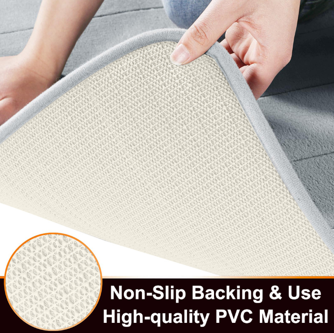 Realizate din materiale de calitate, covorașele au la interior spumă cu memorie, care se adaptează formei piciorului, oferind confort sporit și o senzație moale la atingere. Suprafața textilă absoarbe rapid apa, menținând baia curată și uscată, iar baza antiderapantă asigură stabilitate pe pardoseală, chiar și în zonele umede.
