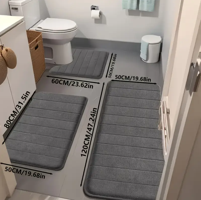Transformă-ți baia într-un spațiu mai confortabil și sigur cu acest set de 3 covorașe din spumă cu memorie, special conceput pentru a oferi o senzație plăcută la fiecare pas și pentru a preveni alunecările neplăcute.