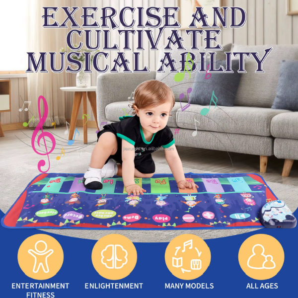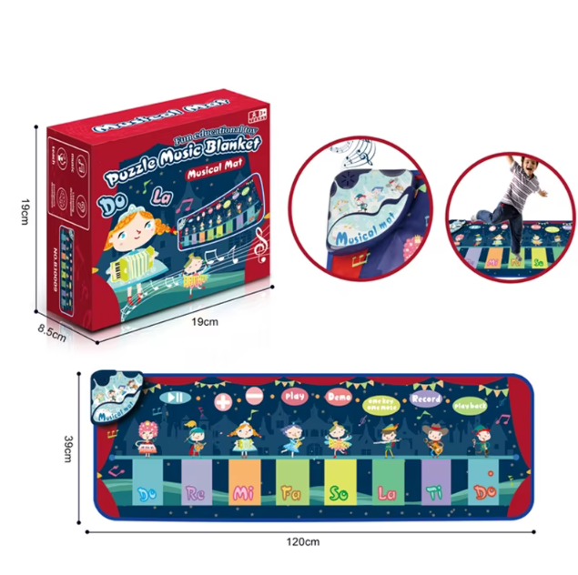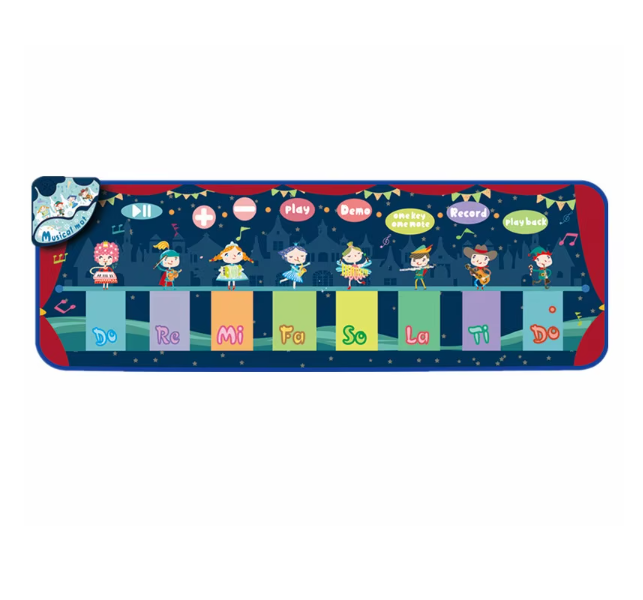 Covorul muzical pentru copii este o jucărie educativă și interactivă care îmbină distracția cu dezvoltarea abilităților muzicale și motrice. Conceput pentru copiii de peste 3 ani, acest covor colorat și rezistent are o dimensiune de 120 x 39 cm, oferind suficient spațiu pentru joacă și descoperire. Realizat din materiale de calitate, cu suprafață impermeabilă și spate anti-alunecare, covorul asigură siguranță și confort în timpul utilizării. Copiii se pot juca în voie fără riscul de accidente sau deteriorare. Covorul este dotat cu 8 clape de pian și o varietate de funcții și instrumente muzicale, care îi încurajează pe cei mici să descopere sunete noi și să își dezvolte creativitatea. Prin simpla apăsare a clapelor sau a butoanelor dedicate, copilul poate experimenta cu diferite moduri de redare și instrumente. Funcții și butoane disponibile:
