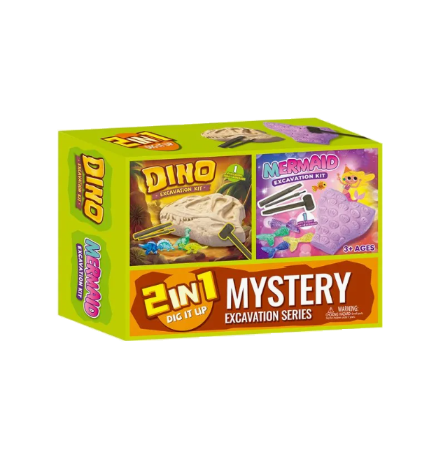 Descoperă misterele ascunse cu Kitul de arheologie Ælements® 2 în 1, o jucărie educativă și interactivă care îi transformă pe cei mici în mici exploratori și arheologi. Setul oferă două experiențe captivante într-un singur pachet: excavarea unui dinozaur și descoperirea unei cozi de sirenă. Procesul de „săpătură” le dezvoltă copiilor răbdarea, atenția și coordonarea, oferindu-le în același timp bucuria descoperirii pas cu pas. Este o activitate perfectă pentru joaca de acasă, pentru sesiunile educative și pentru stimularea imaginației. Ce conține kitul: