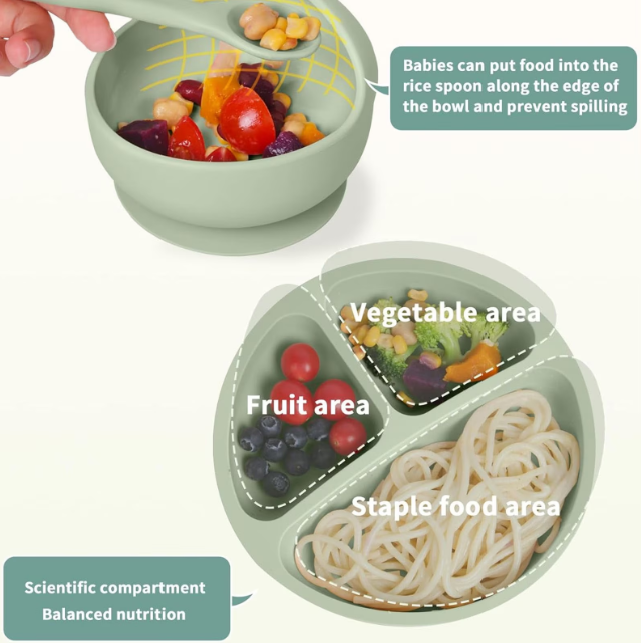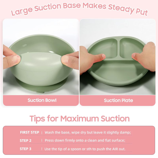 • Farfurie cu ventuză – stabilă și ușor de folosit de către cei mici